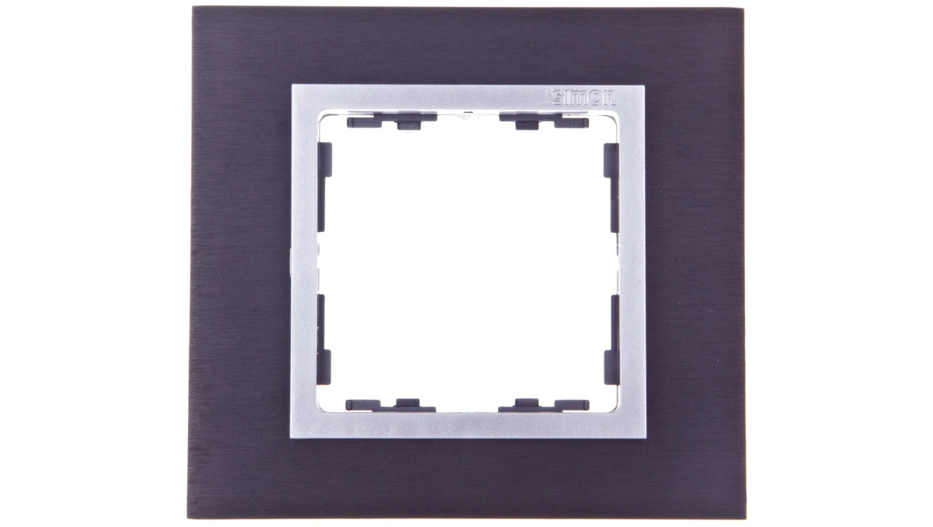 Simon 82 Ramka pojedyncza metalowa inox czarny/ ramka pośrednia aluminium 82917-38