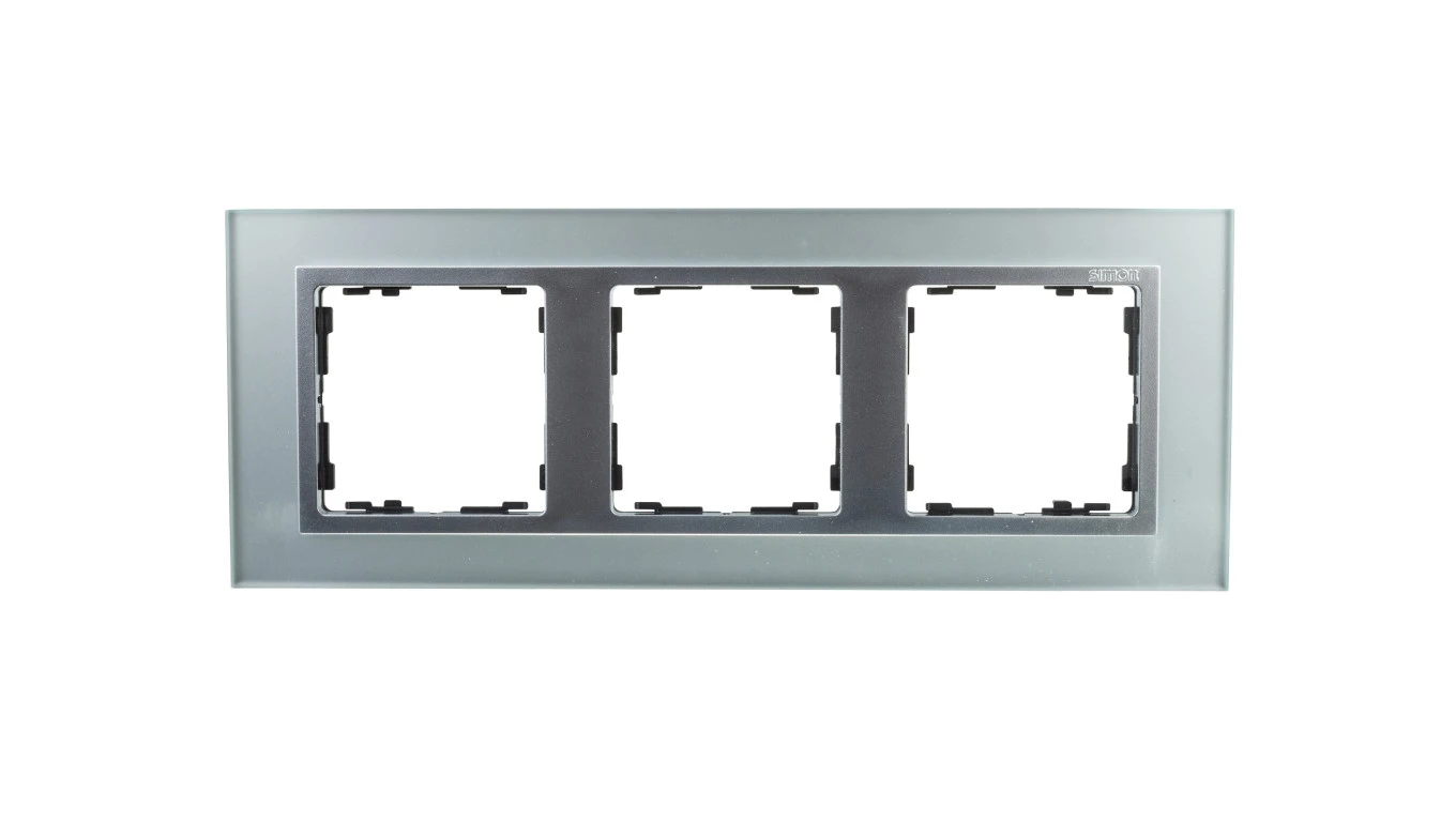 Simon 82 Ramka potrójna pozioma szklana srebro/ ramka pośrednia aluminium mat 82937-62