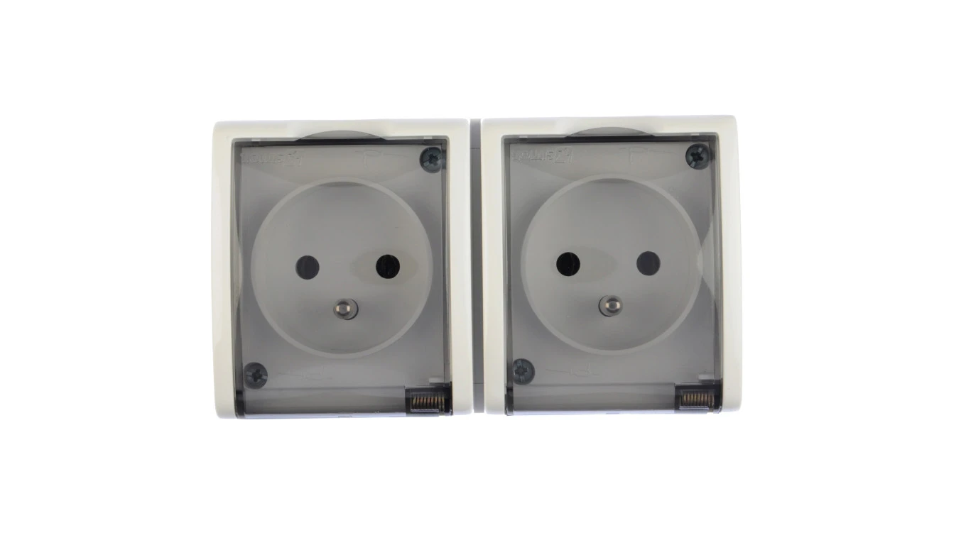 Simon Aquarius Gniazdo hermetyczne podwójne z/u IP54 z klapką transparentną białe AQGZ1-2/11a