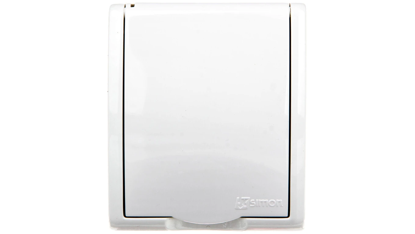Simon Aquarius Gniazdo hermetyczne pojedyncze z/u IP54 z przesłoną torów i klapką pełną białe AQGZ1z/11