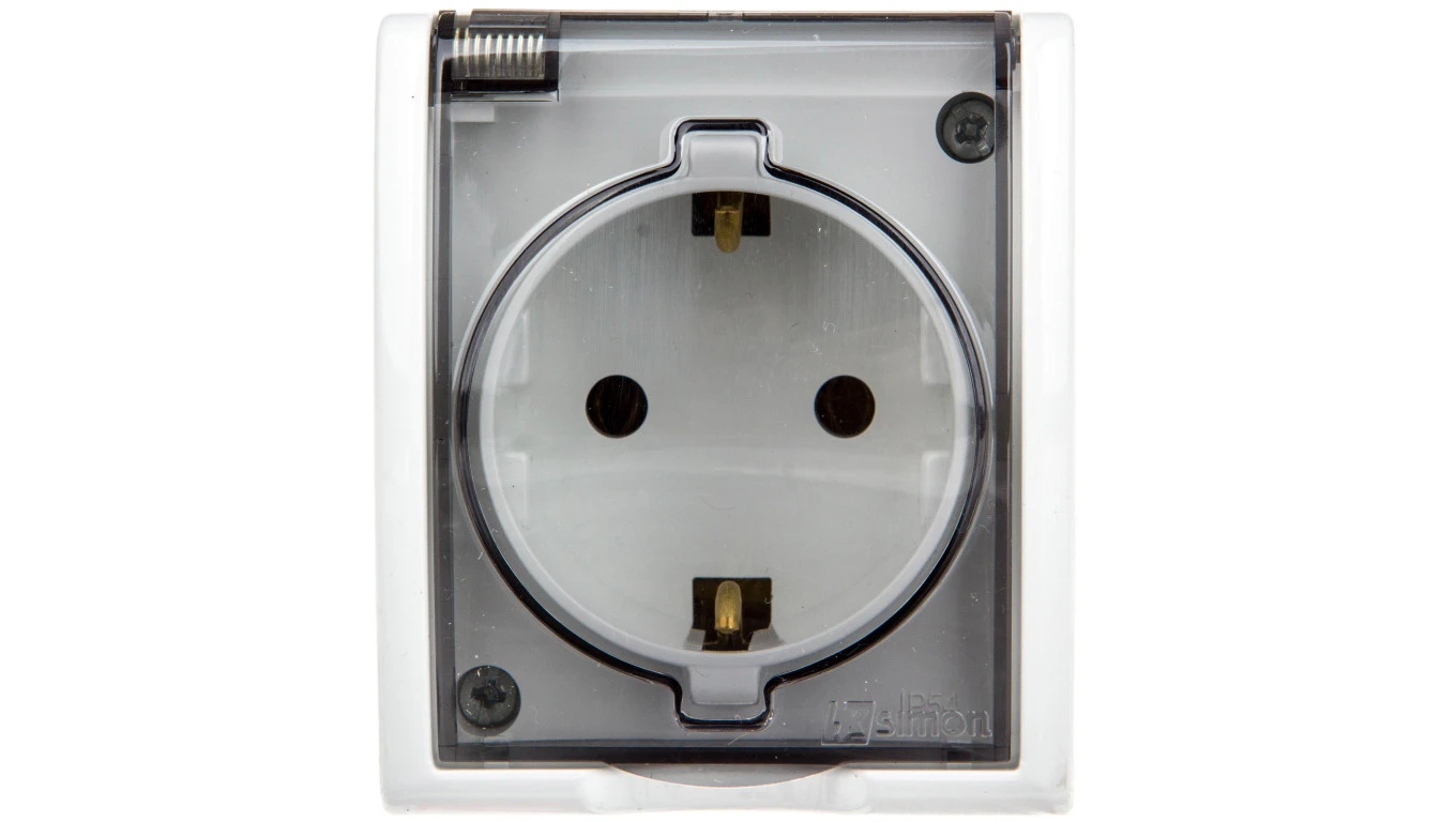 Simon Aquarius Gniazdo hermetyczne pojedyncze z/u Schuko IP54 z klapka dymną białe AQGSz1/11a