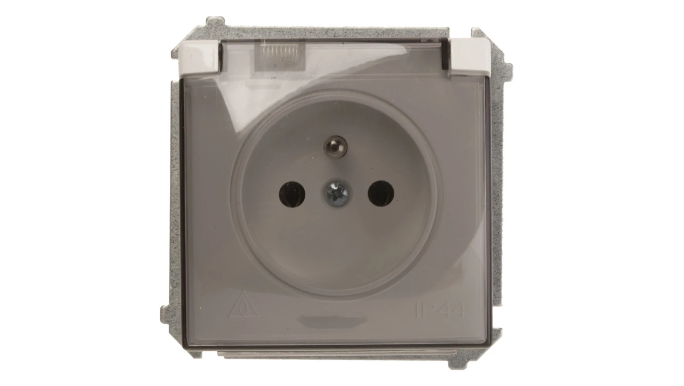 Simon Basic Gniazdo bryzgoszczelne z/u IP44 z klapką dymną białe BMGZ1B.01/11a