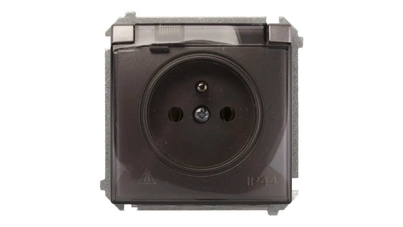 Simon Basic Gniazdo bryzgoszczelne z/u IP44 z klapką dymną stal inox BMGZ1B.01/21a