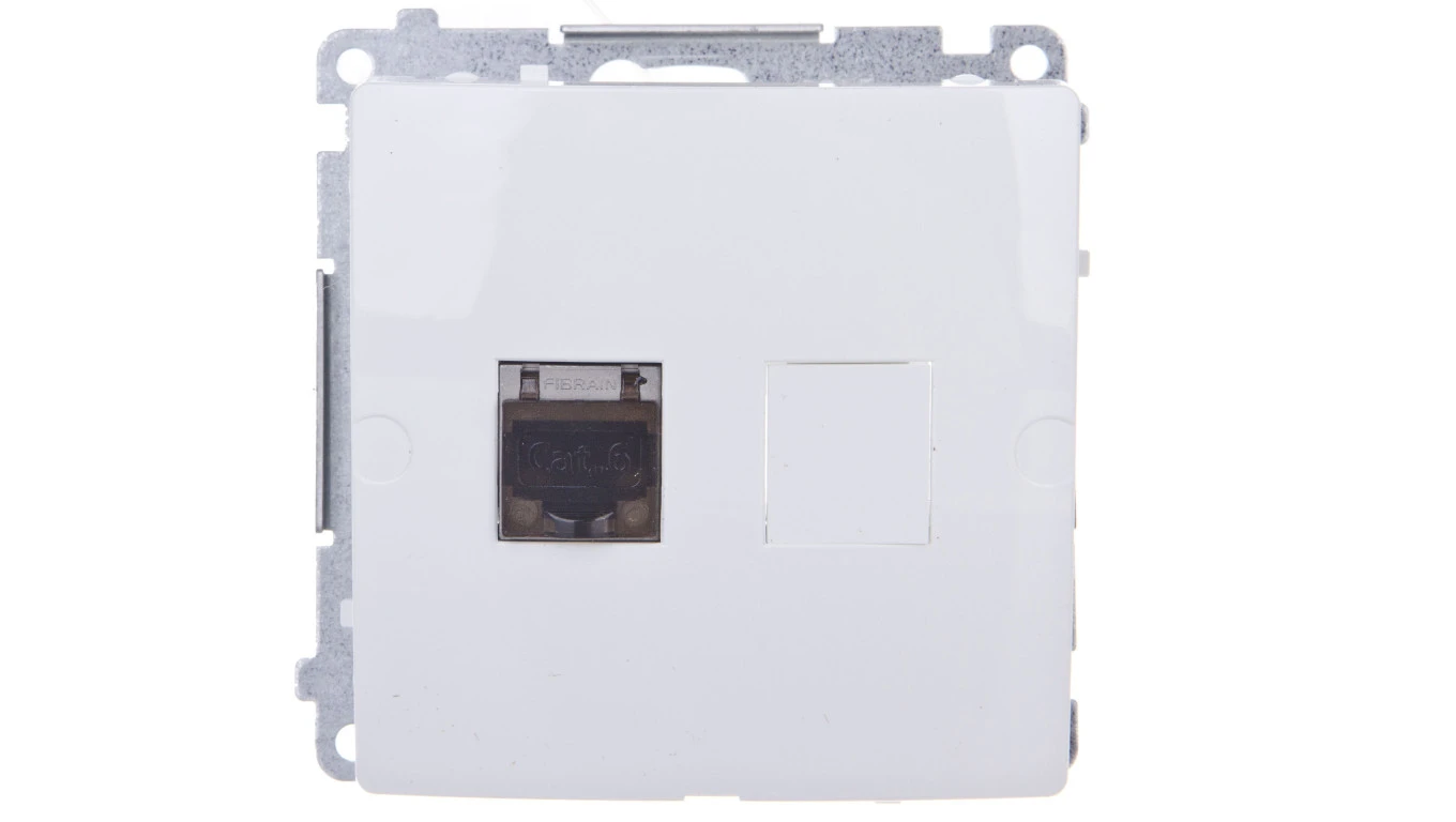 Simon Basic Gniazdo komputerowe pojedyncze RJ45 kat.6 ekranowane z przesłoną białe BM61E.01/11