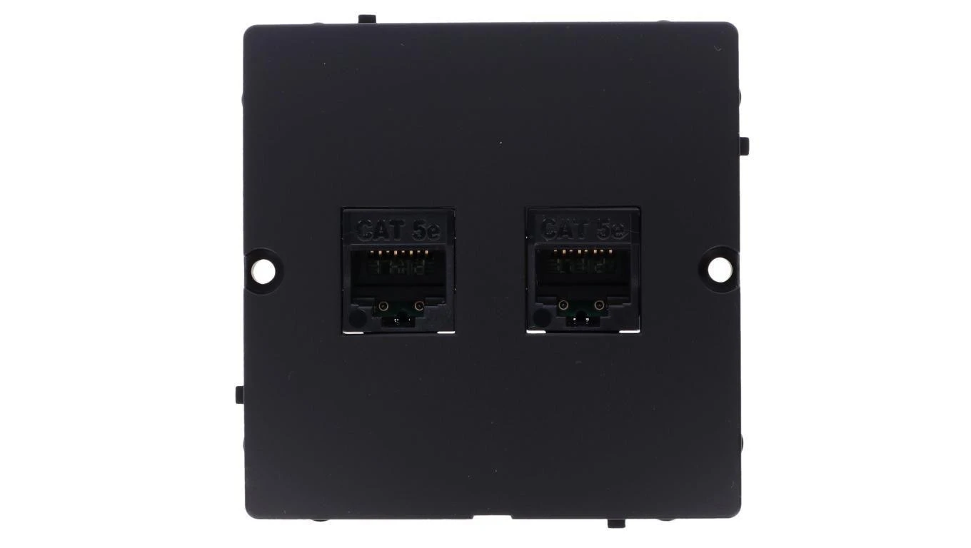 Simon Basic Gniazdo komputerowe RJ45 podwójne kategoria 5e (moduł). Montaż gniazda na wkręty do puszki czarny BMF52.02/49