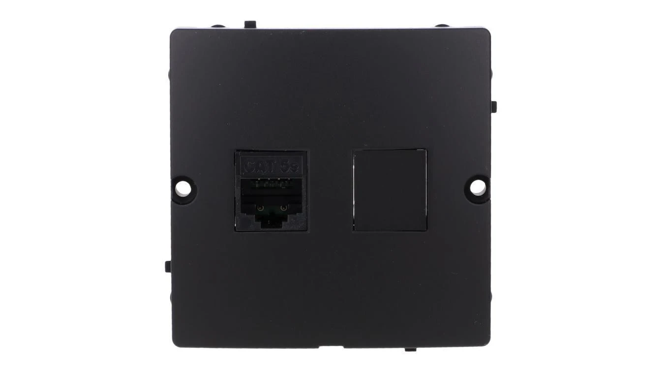 Simon Basic Gniazdo komputerowe RJ45 pojedyncze, kategoria 5e (moduł). Montaż gniazda na wkręty do puszki czarny BMF51.02/49