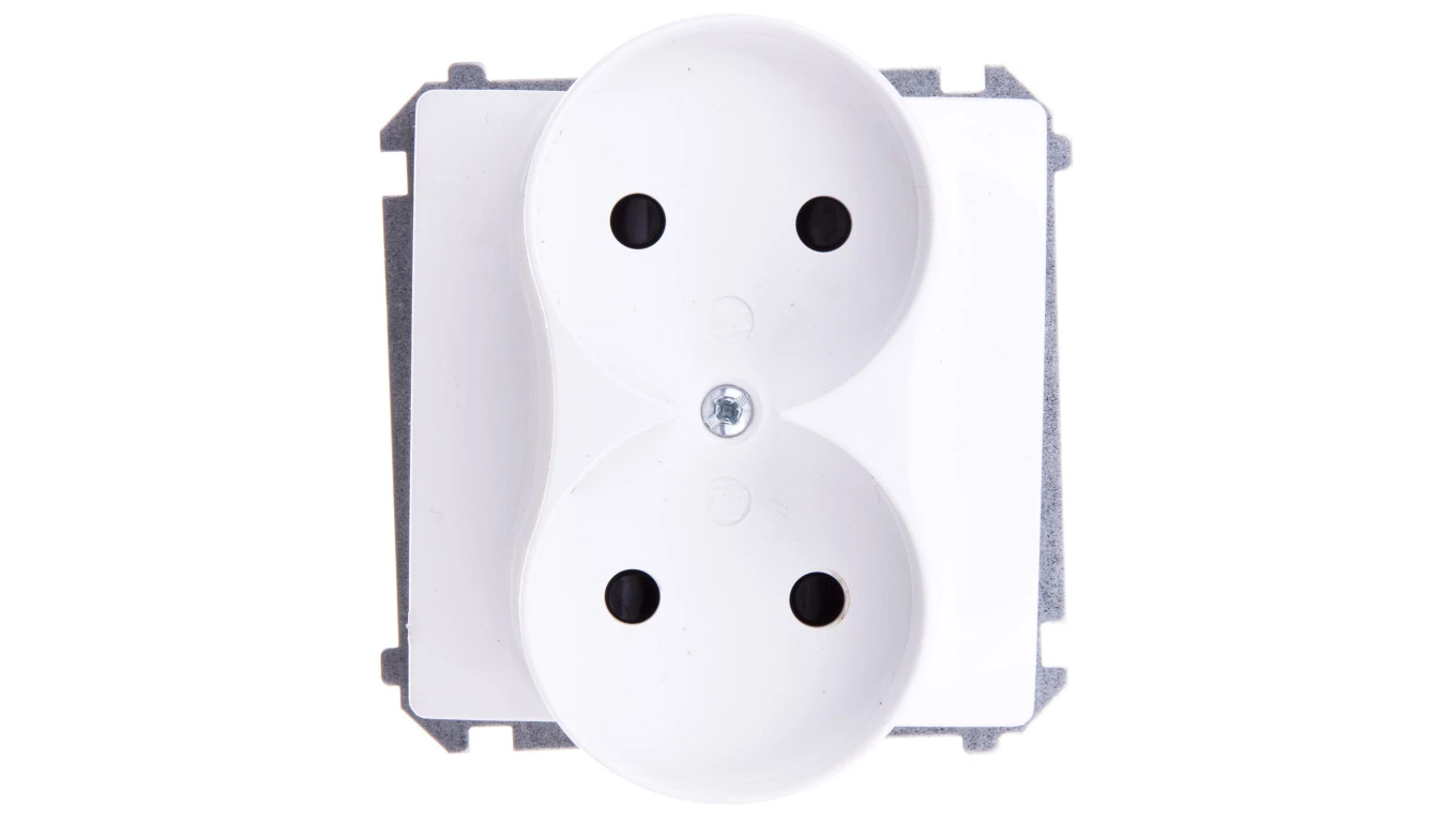 Simon Basic Gniazdo podwójne b/u 16A IP20 z przesloną torów białe BMG2Mz.01/11