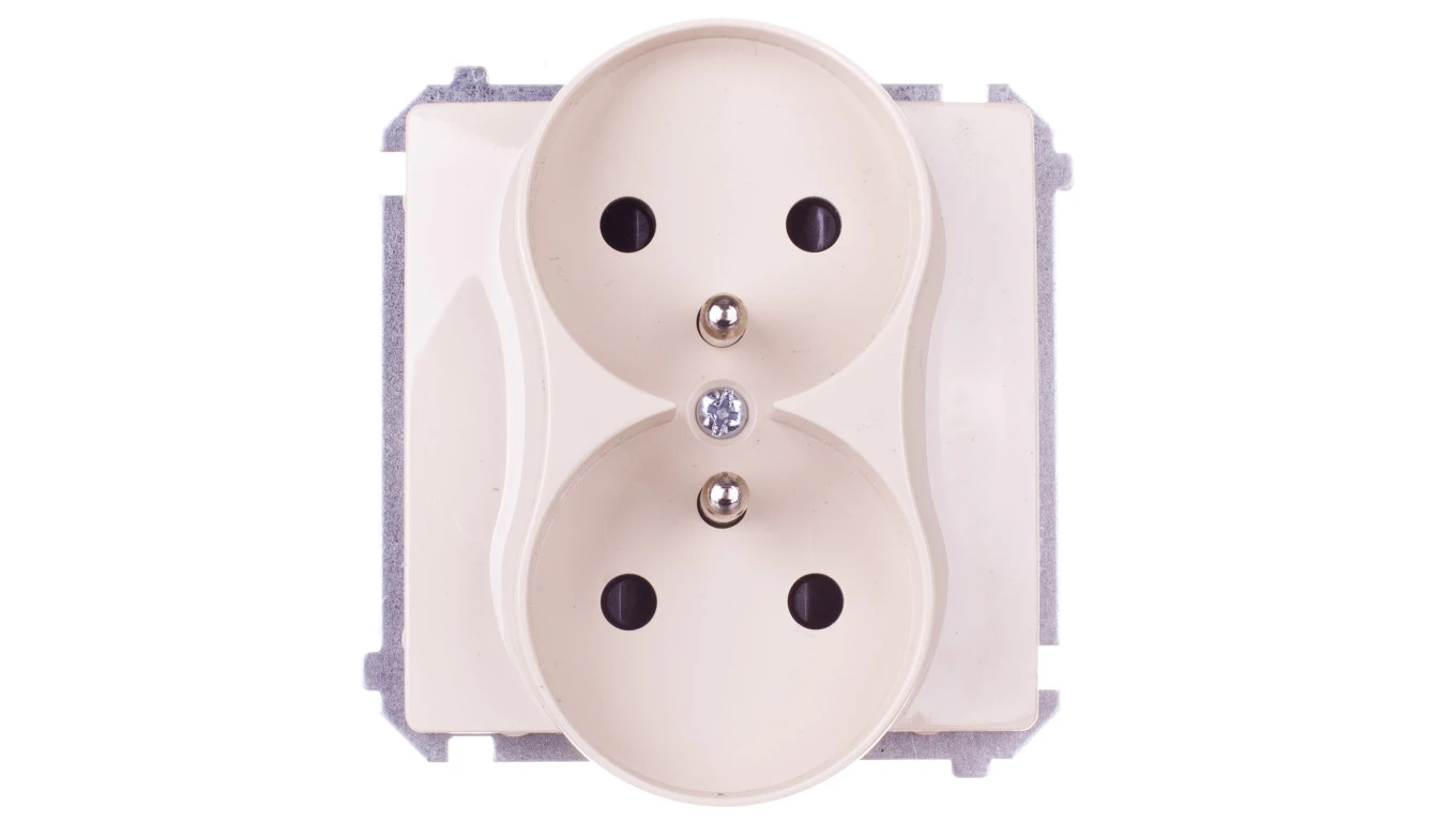 Simon Basic Gniazdo podwójne z/u 16A IP20 z przesłoną torów beżowe BMGZ2Mz.01/12