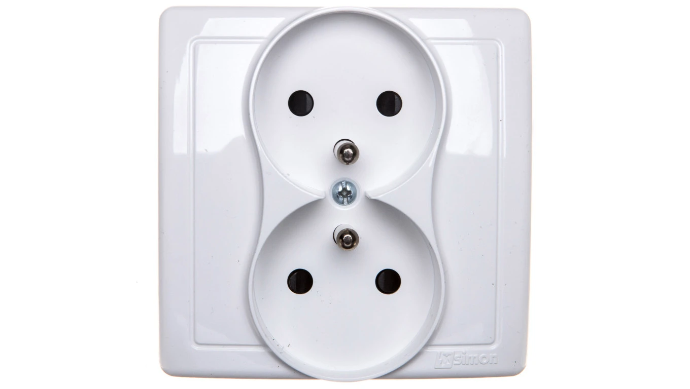 Simon Basic Gniazdo podwójne z/u 16A IP20 z przesłoną torów białe BMGZ2z/11