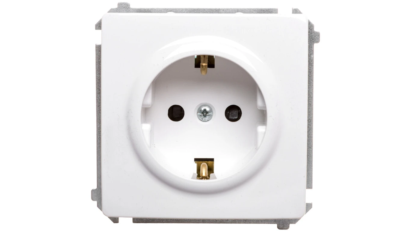 Simon Basic Gniazdo pojedyncze SCHUKO z/u 16A IP20 z przesłoną torów białe BMGSZ1z.01/11