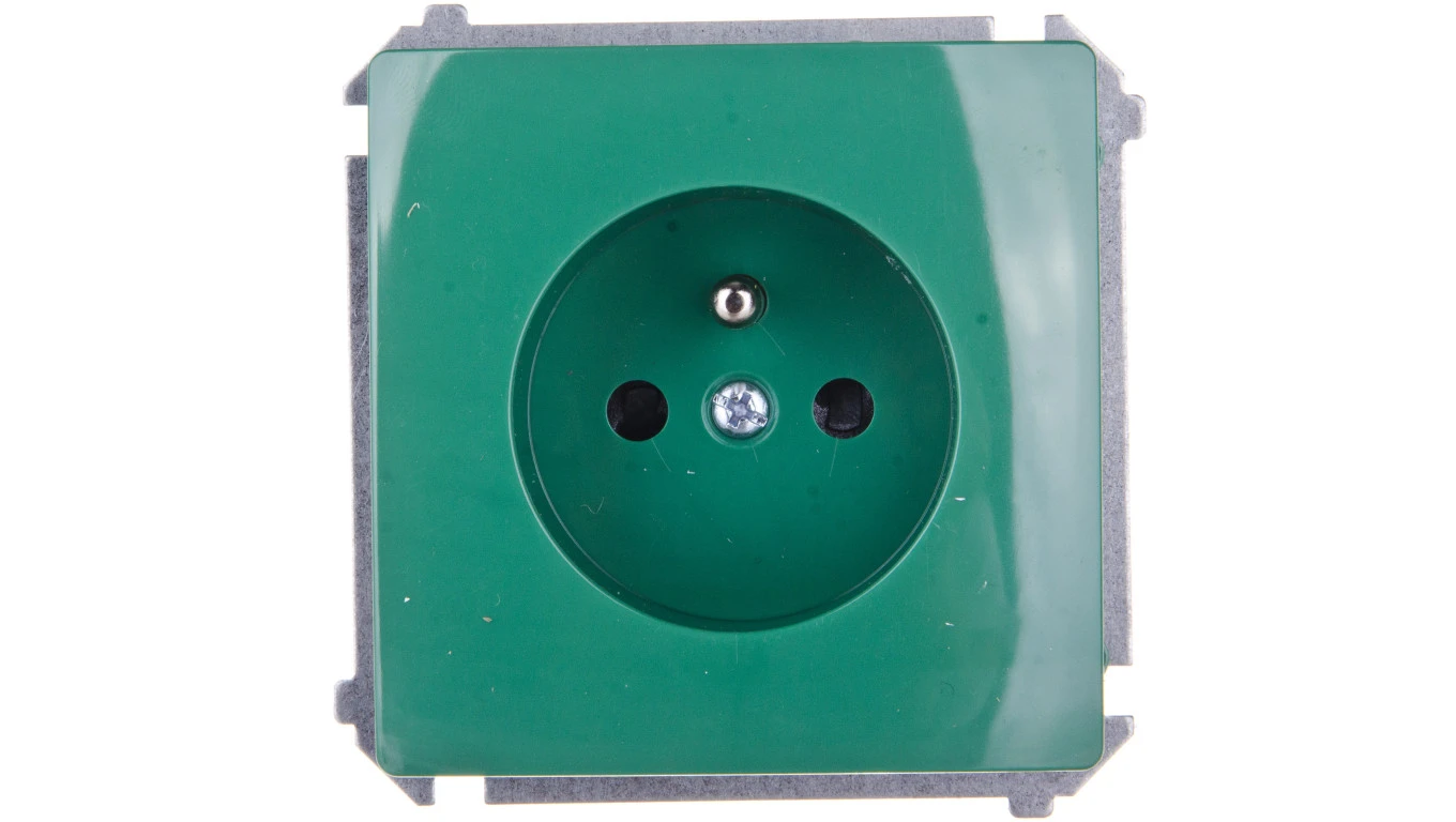 Simon Basic Gniazdo pojedyncze z/u 16A IP20 z przesłoną torów zielone BMGZ1z.01/33