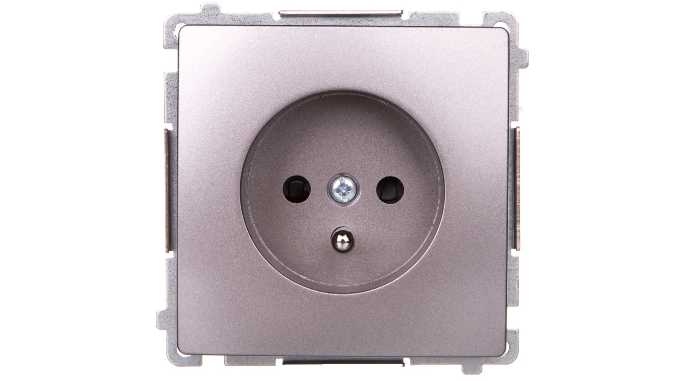 Simon Basic Gniazdo pojedyncze z/u z przesłonami stal inox BMGZ1Z.01/21