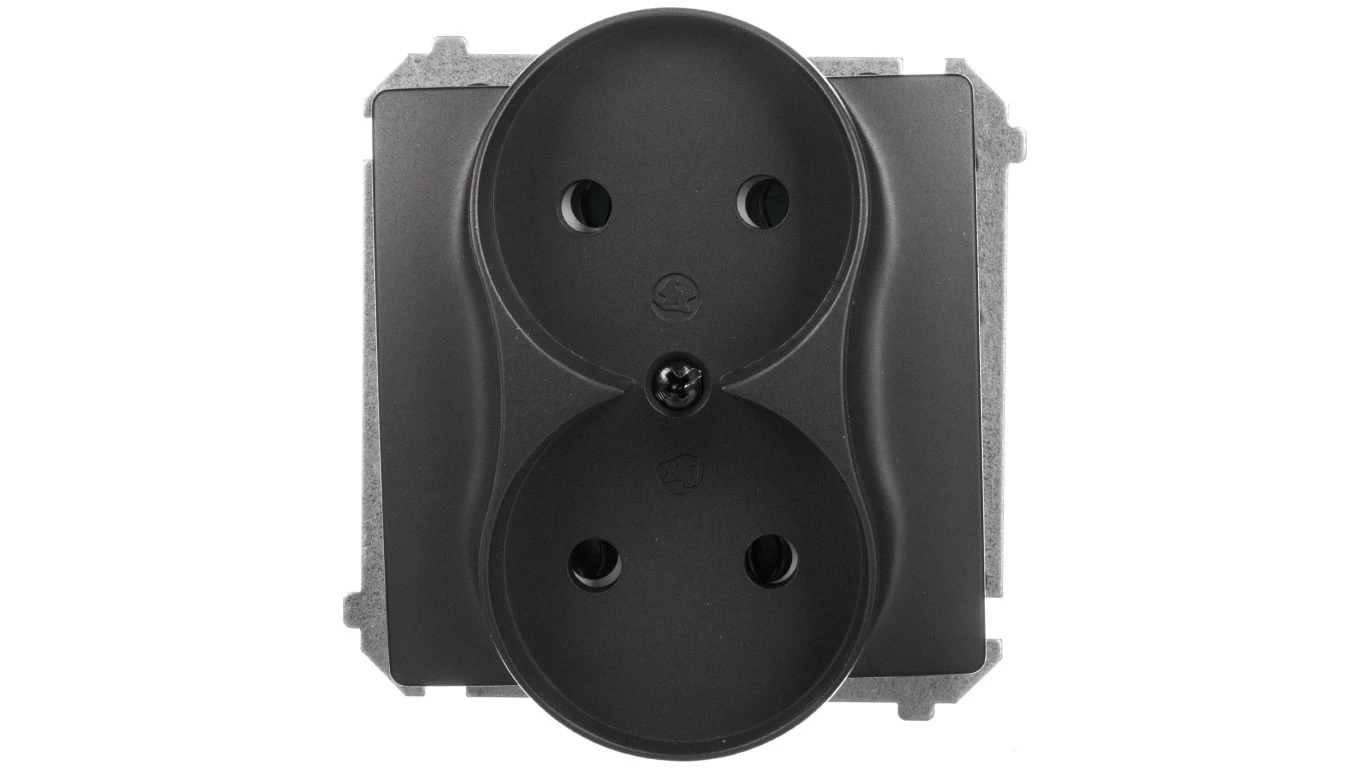 Simon Basic Gniazdo wtyczkowe podwójne b/u (moduł) 16A 250V zaciski śrubowe grafit matowy BMG2M.01/28