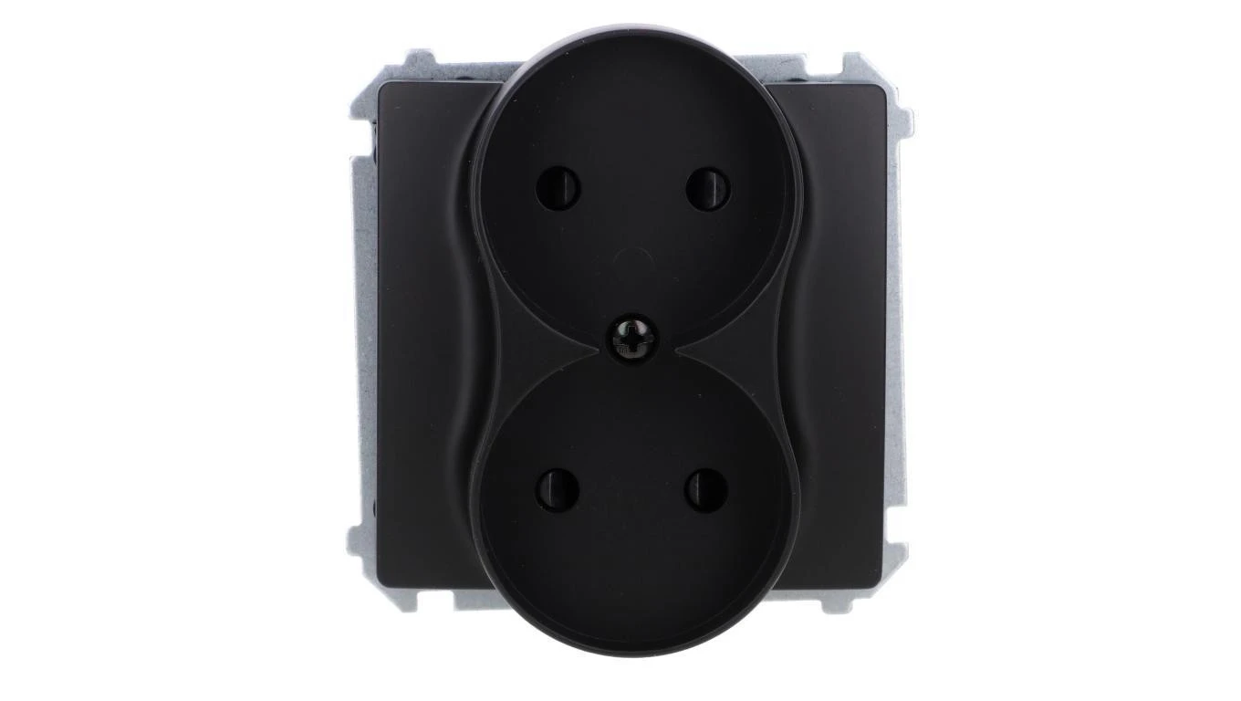 Simon Basic Gniazdo wtyczkowe podwójne bez uziemienia (moduł) z przesł. torów prąd.,16A, 250V, zac. śrubowe czarny BMG2MZ.01/49
