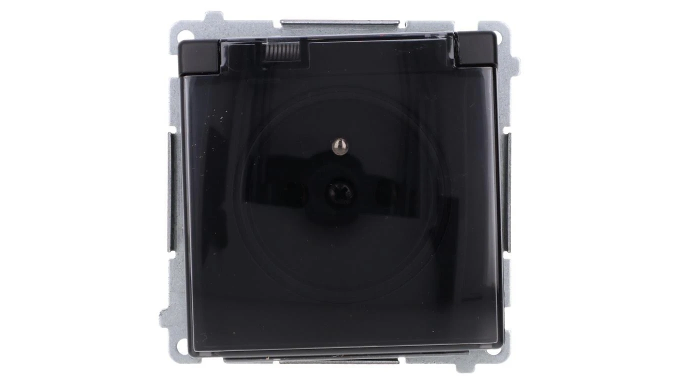 Simon Basic Gniazdo wtyczkowe z uziemieniem, IP44 (moduł) 16A, 250V, zaciski śrubowe klapka transp. czarny BMGZ1B.01/49A