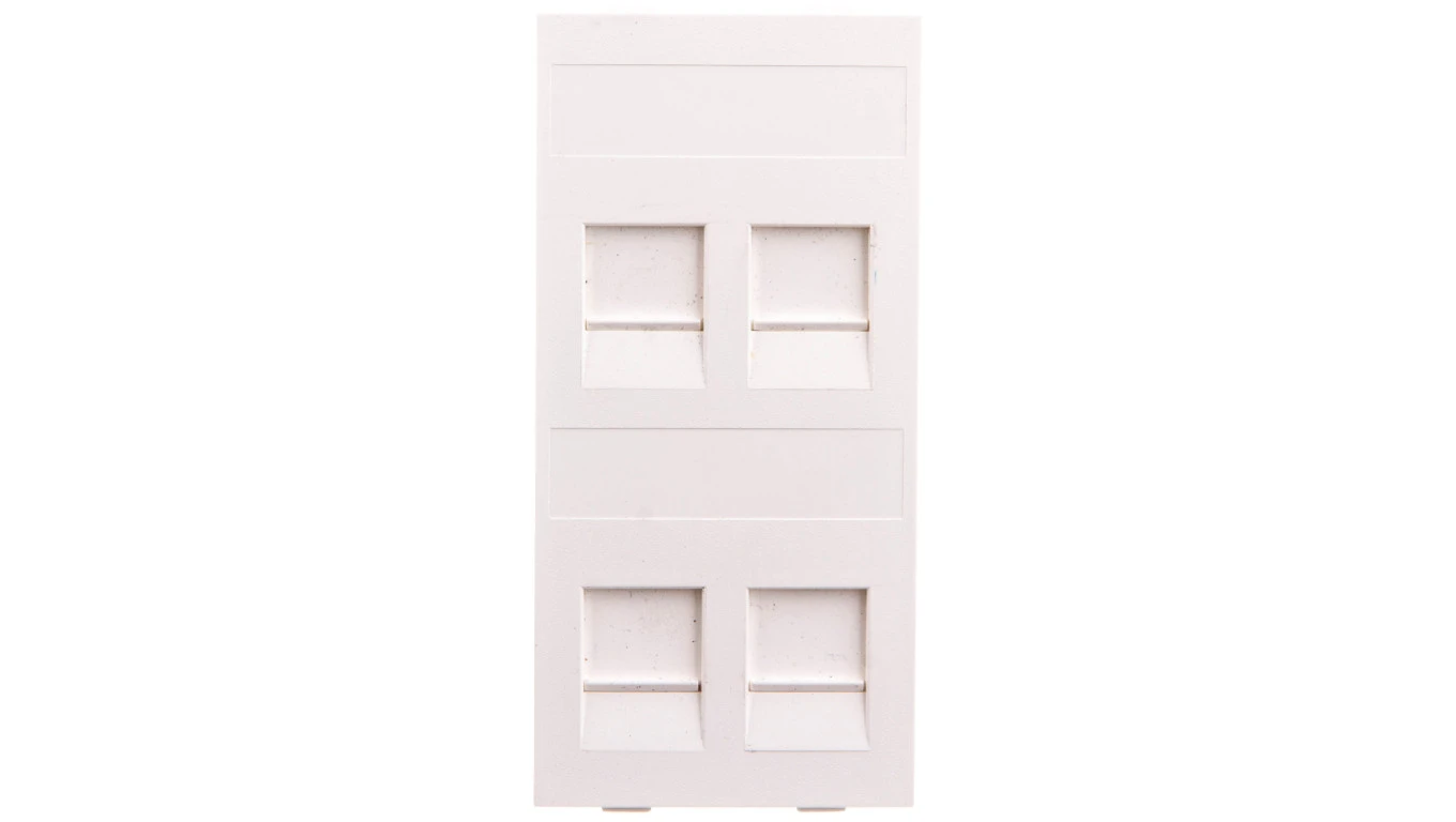 Simon Connect Płytka CIMA gniazda teleinformatycznego poczwórnego 4xRJ płaska z przesłoną czysta biel S76c/9