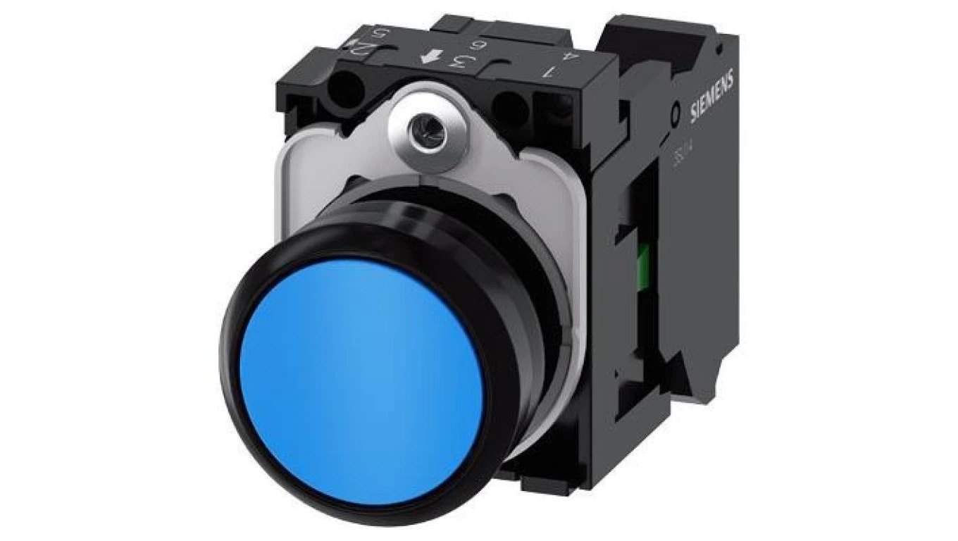 SIRIUS ACT, PRZYCISK, 22MM, OKRĄGŁY, TWORZYWO, NIEBIESKI, PŁASKI, Z SAMOPOWROTEM, Z UCHWYTEM 1NO, PRZYŁ. SPRĘŻ3SU1100-0AB50-3BA0