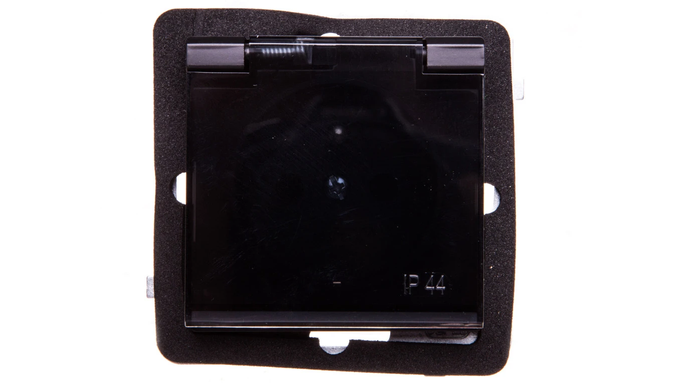 SONATA Gniazdo bryzgoszczelne z/u IP44 klapka przezroczysta czarny metalik GPH-1RZ/m/33/d