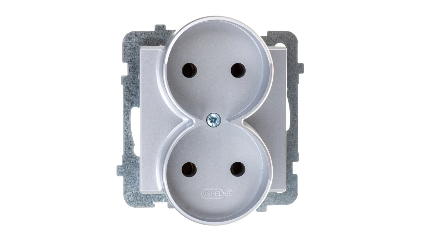 SONATA Gniazdo podwójne b/u srebro mat GP-2RR/m/38