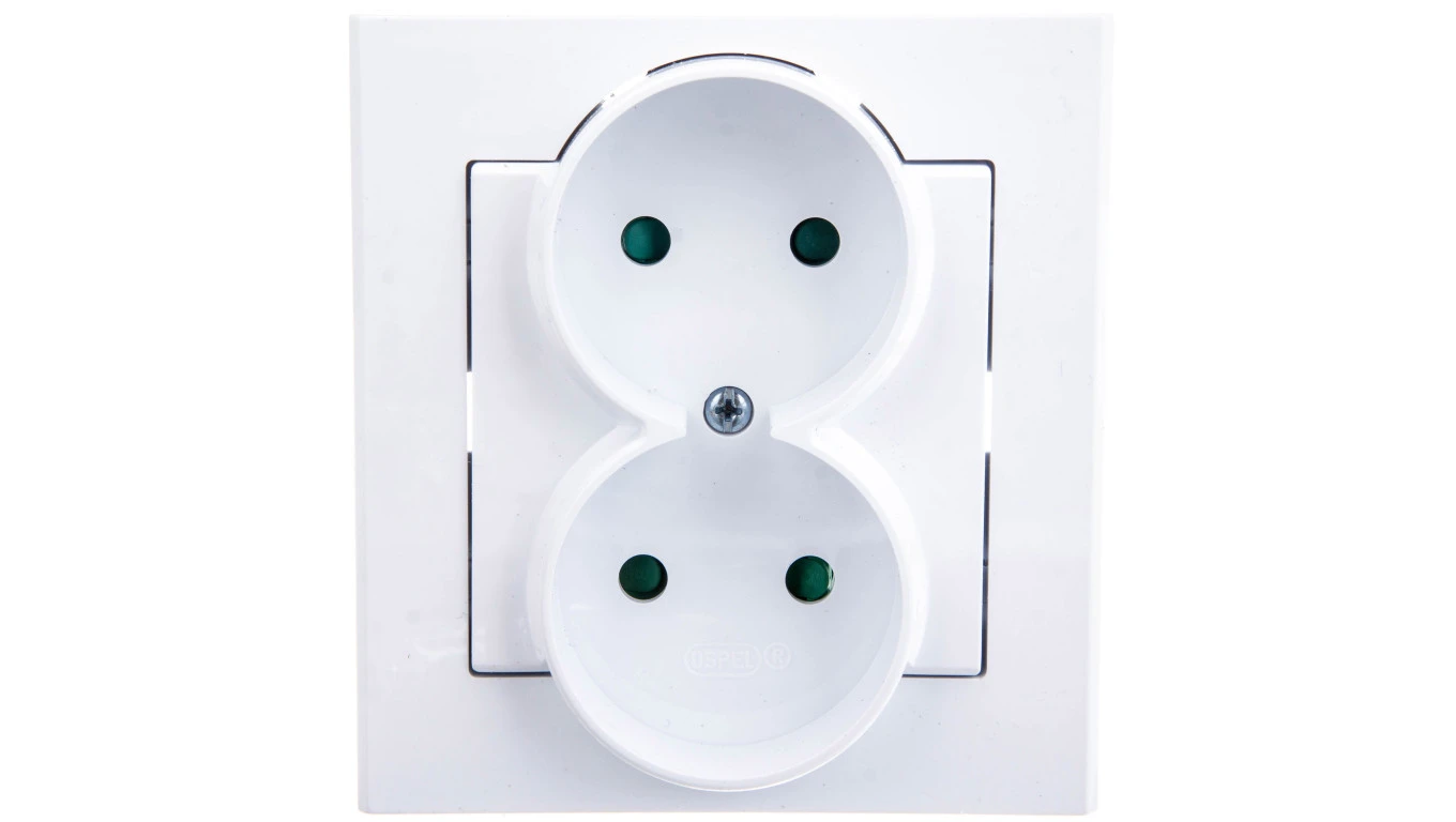 SONATA Gniazdo podwójne z przesłonami torów prądowych, kompletne z ramką biały mat GP-2RP/75