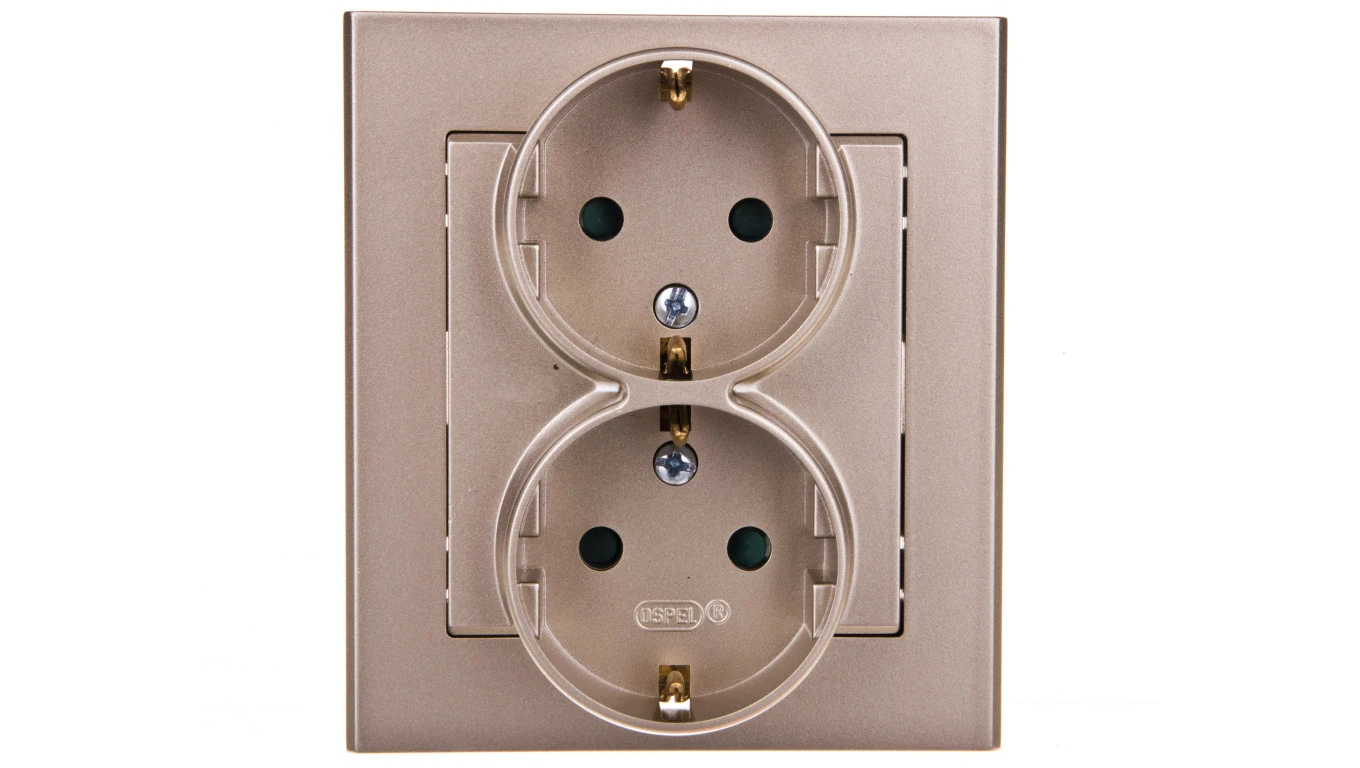 SONATA Gniazdo podwójne z/u Schuko z przesłonami szampański złoty GP-2RSP/39