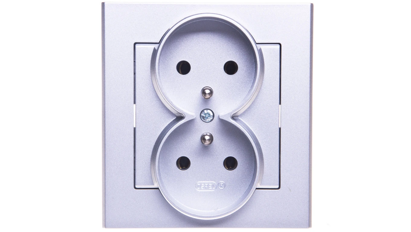 SONATA Gniazdo podwójne z/u srebro mat GP-2RZ/38