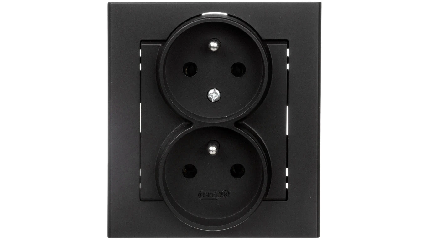 SONATA Gniazdo podwójne z/u z niezmiennością faz czarny metalik GP-2RC/33