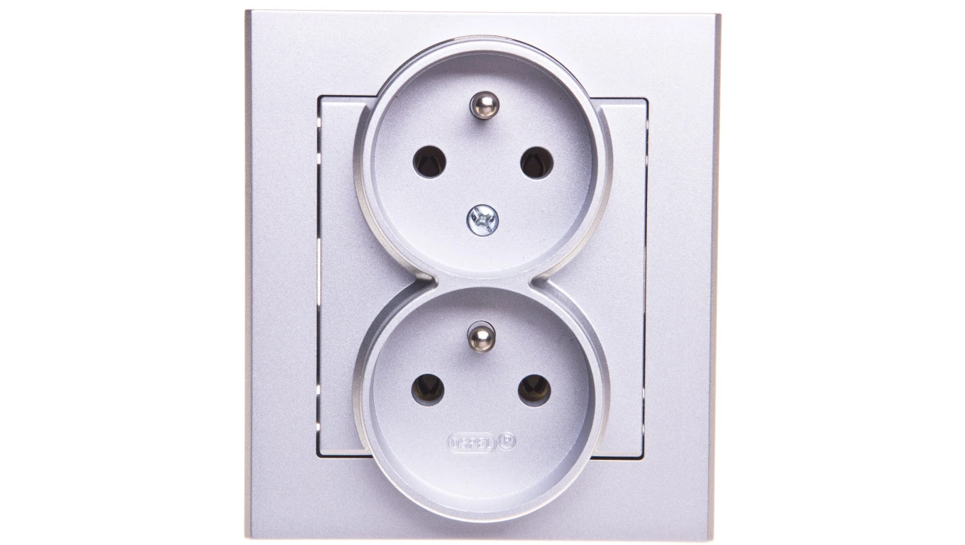 SONATA Gniazdo podwójne z/u z niezmiennością faz srebro mat GP-2RC/38
