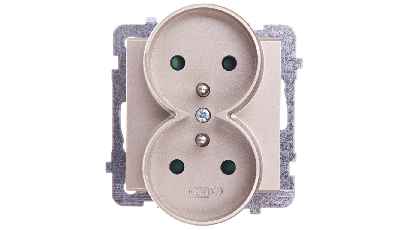 SONATA Gniazdo podwójne z/u z przesłonami szampański złoty GP-2RRZP/m/39