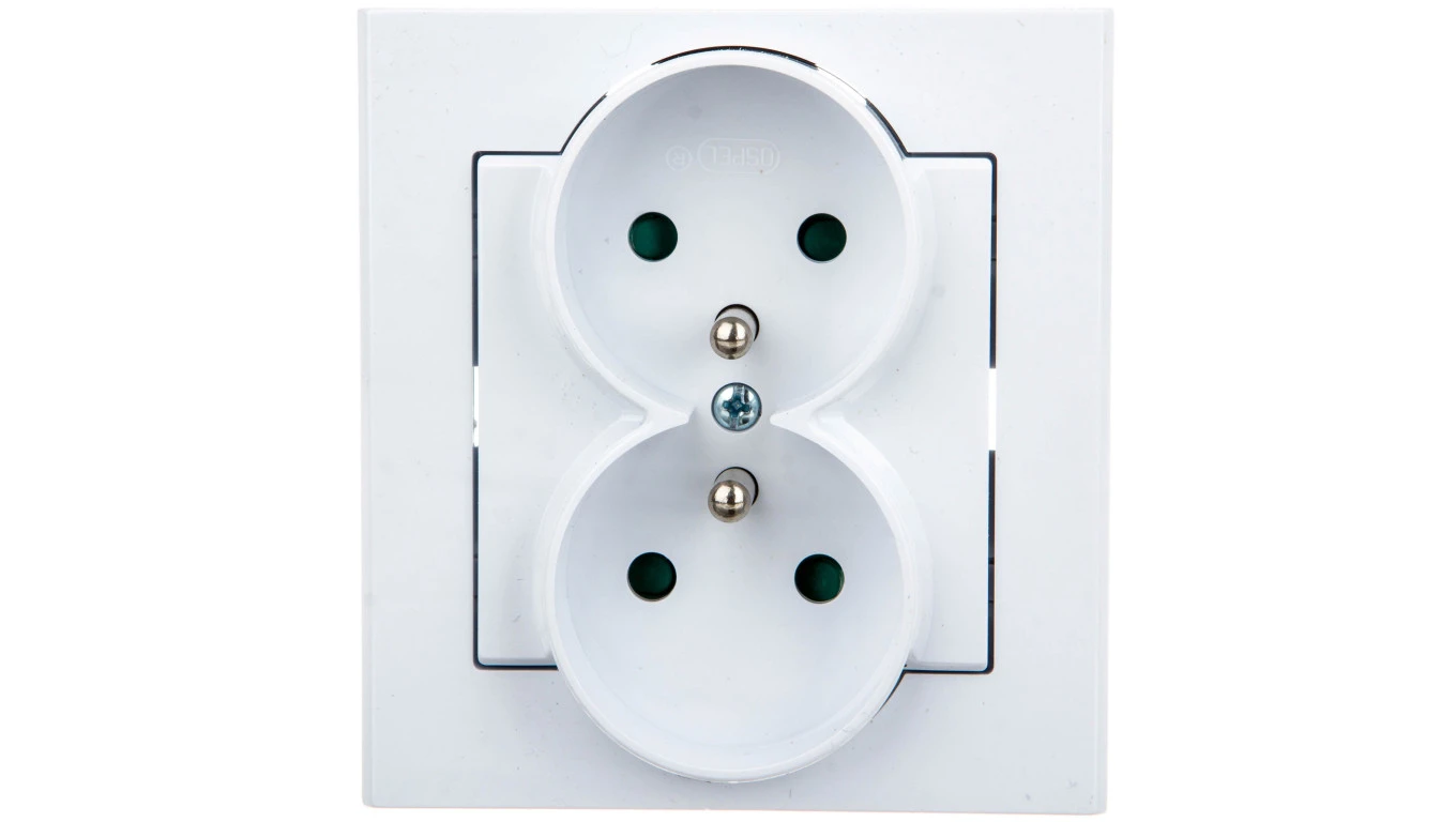 SONATA Gniazdo podwójne z uziemieniem z przesłonami torów prądowych, kompletne z ramką biały mat GP-2RZP/75
