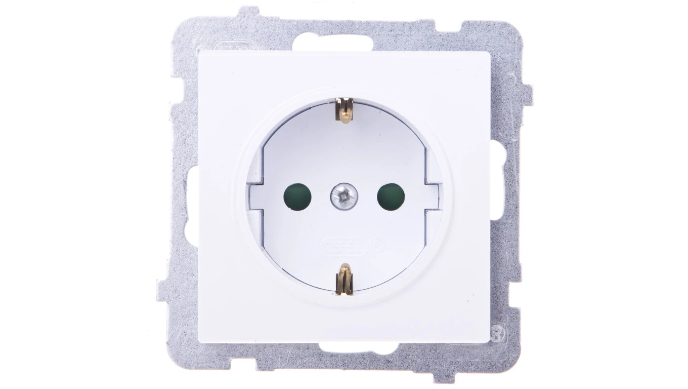 SONATA Gniazdo pojedyncze z uziemieniem schuko z przesłonami torów prądowych biały mat GP-1RSP/m/75