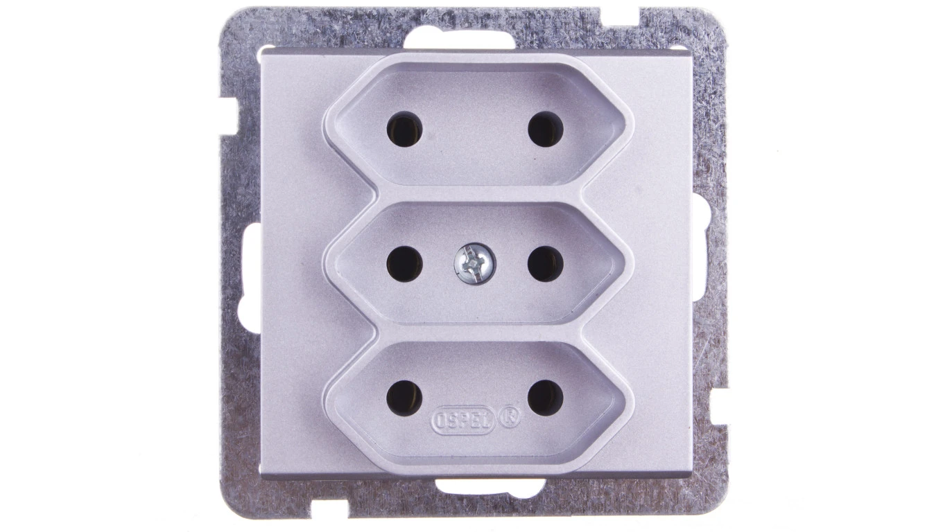 SONATA Gniazdo potrójne b/u 2,5A EURO srebro mat GP-3R/m/38
