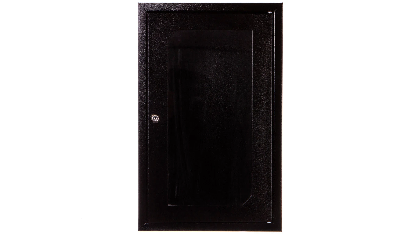 Szafa rack wisząca 10 9U 310x300 IP30 RAL9005 czarna (drzwi przeszklone) SZW-10-9U-30-DS-C