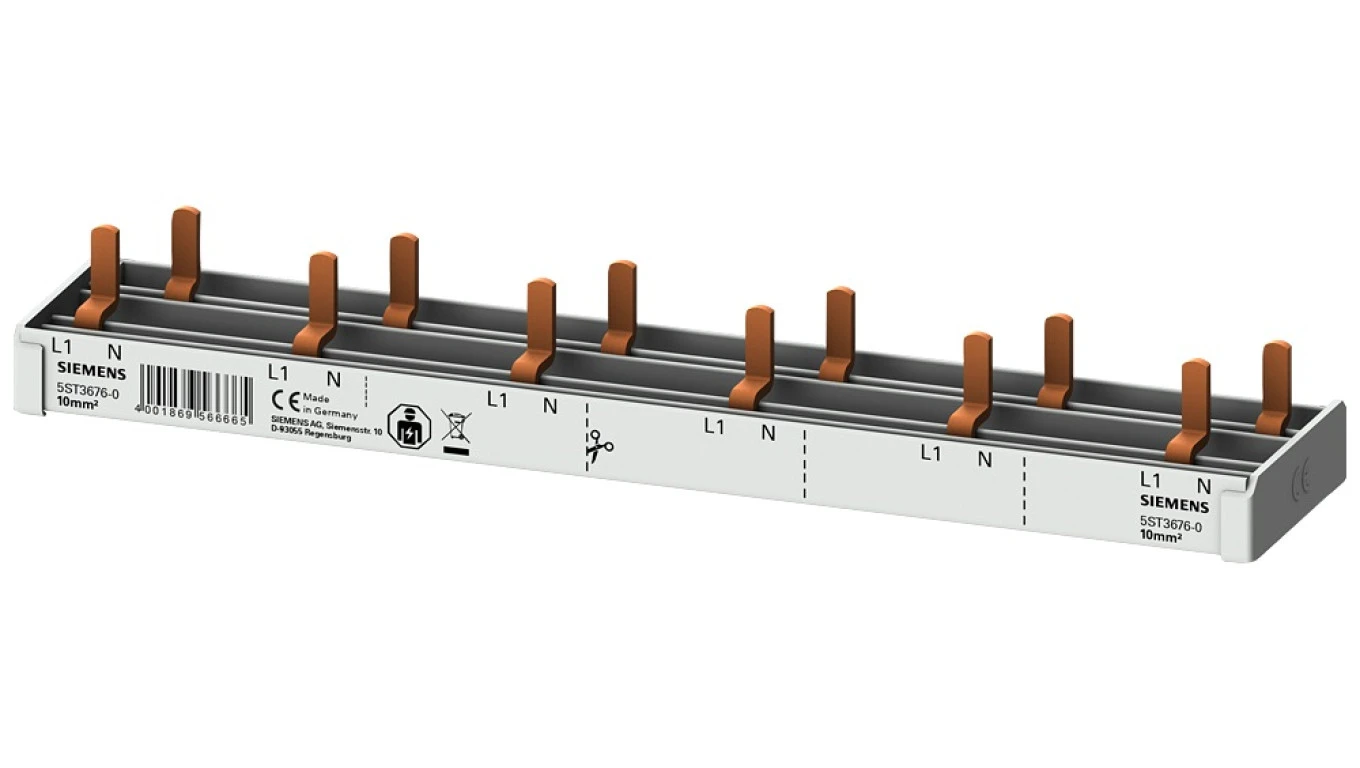 Szyna łączeniowa 1P+N 10mm2 sztyftowa 12 modułowa dla 6x (AFDD 5SM6 + 6x 5SV1 / 5SL60) pełna izolacja 5ST3676-0