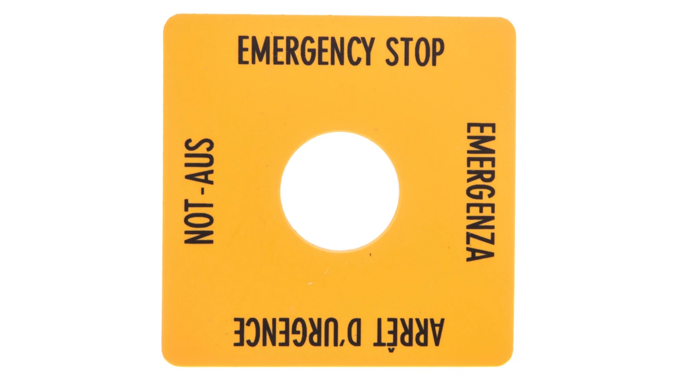Tabliczka opisowa żółta 50x50mm EMERGENCY STOP SQT1 058874