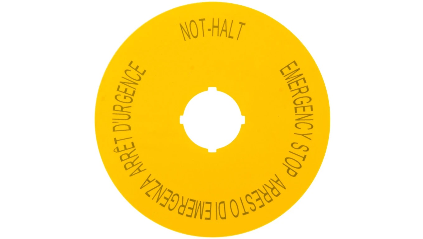 Tabliczka opisowa żółta okrągła fi90 EMERGENCY STOP M22-XAK11 121085