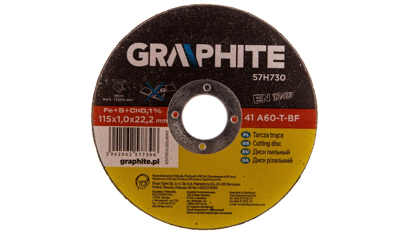Tarcza tnąca do metalu 115 x 1.0 x 22.2 mm, 41 A60-T-BF, INOX