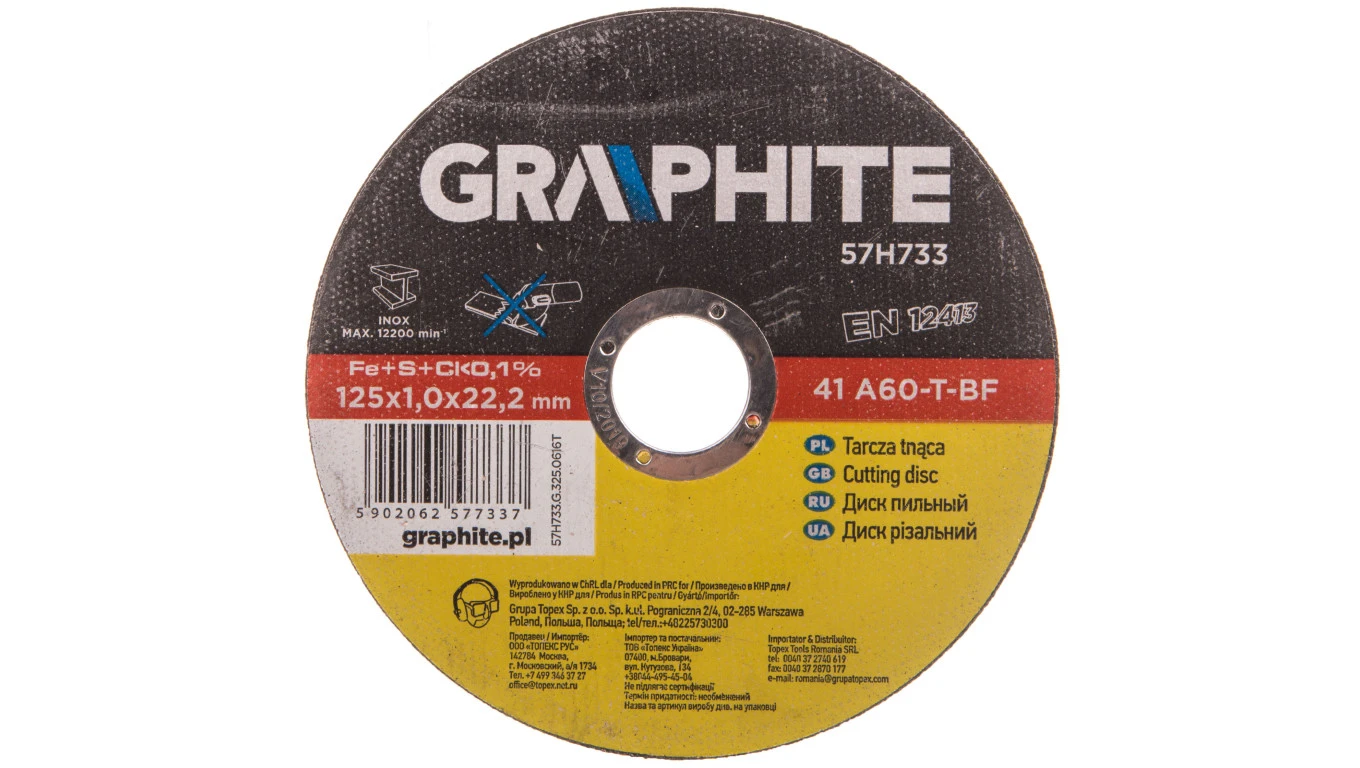 Tarcza tnąca do metalu 125 x 1.0 x 22.2 mm, 41 A60-T-BF, INOX