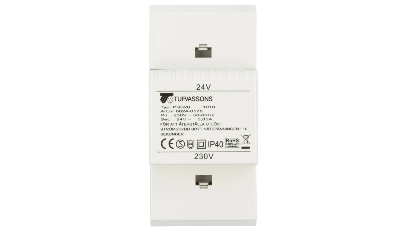 Transformator 1-fazowy modułowy bezpieczeństwa PSS 20 230/ 24V 0,85A, na szynę DIN, IP40, Ta 40, 16024-0178