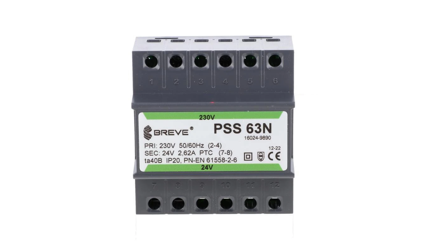 Transformator 1-fazowy modułowy bezpieczeństwa PSS 63N 230/ 24V 2,6A, na szynę DIN, IP20, Ta 40, 16024-9890