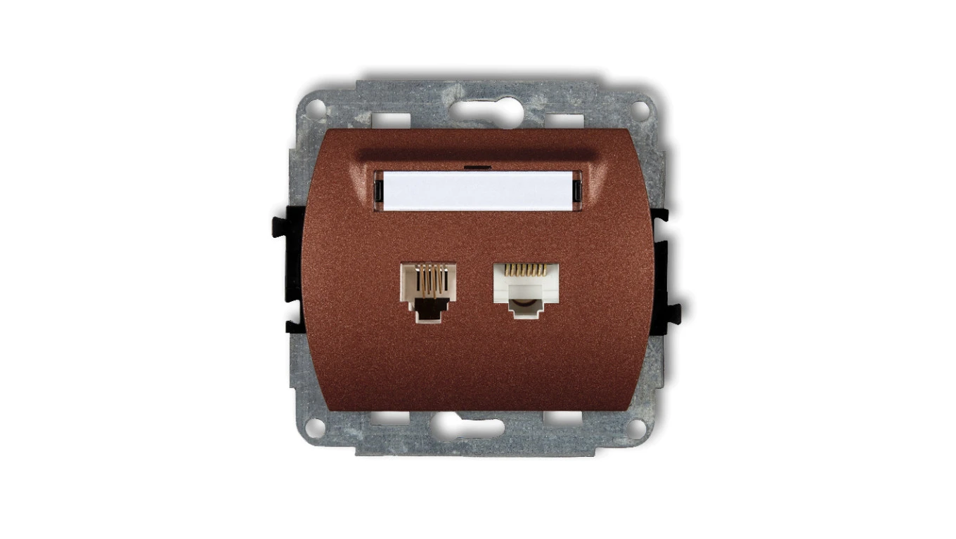 TREND Gniazda telefoniczne pojedyncze 1xRJ11 + komputerowego pojedynczego 1xRJ45, kat. 5e, 8-stykowy brĄzowy metalik 9GTK