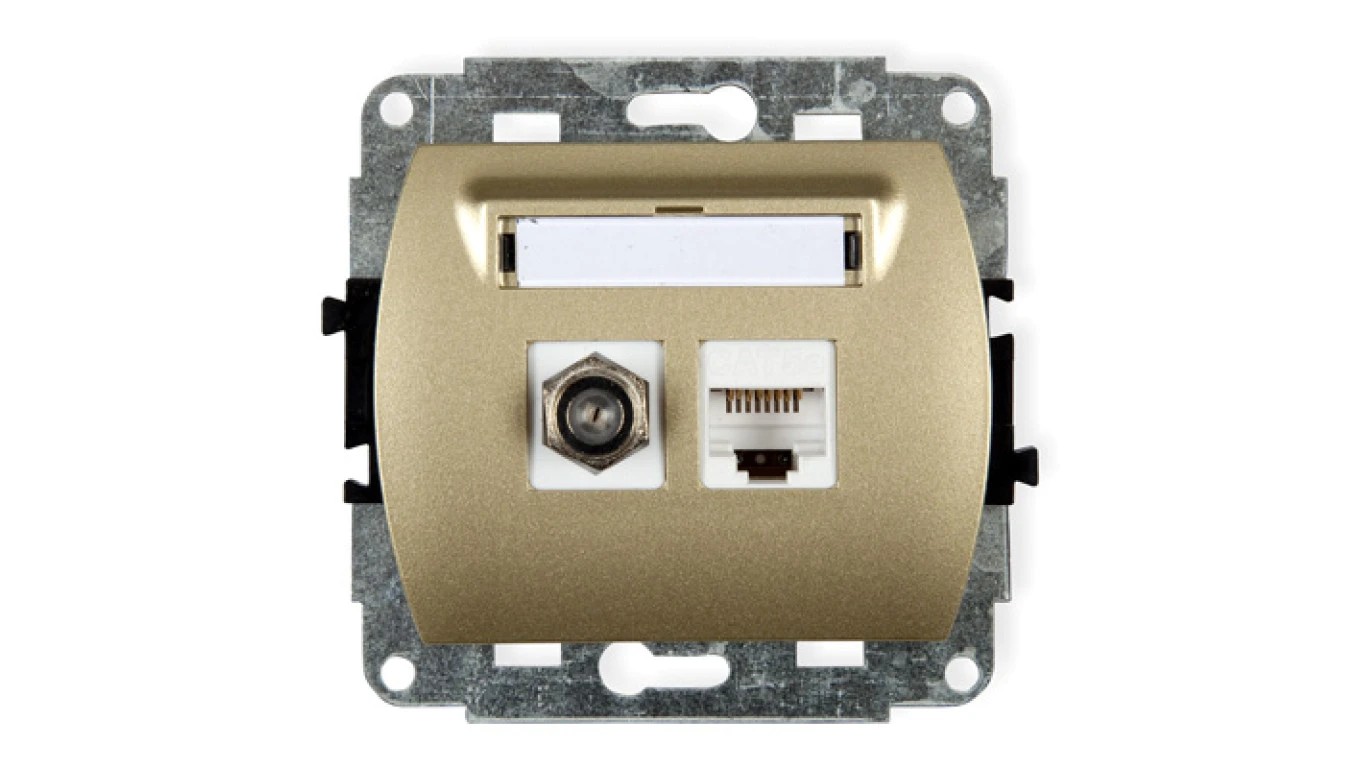 TREND Gniazdo antenowe pojedyncze typu F (SAT) + gniazda komputerowe pojedyncze 1xRJ45 kat. 5e 8-stykowy złoty 6GFK-1