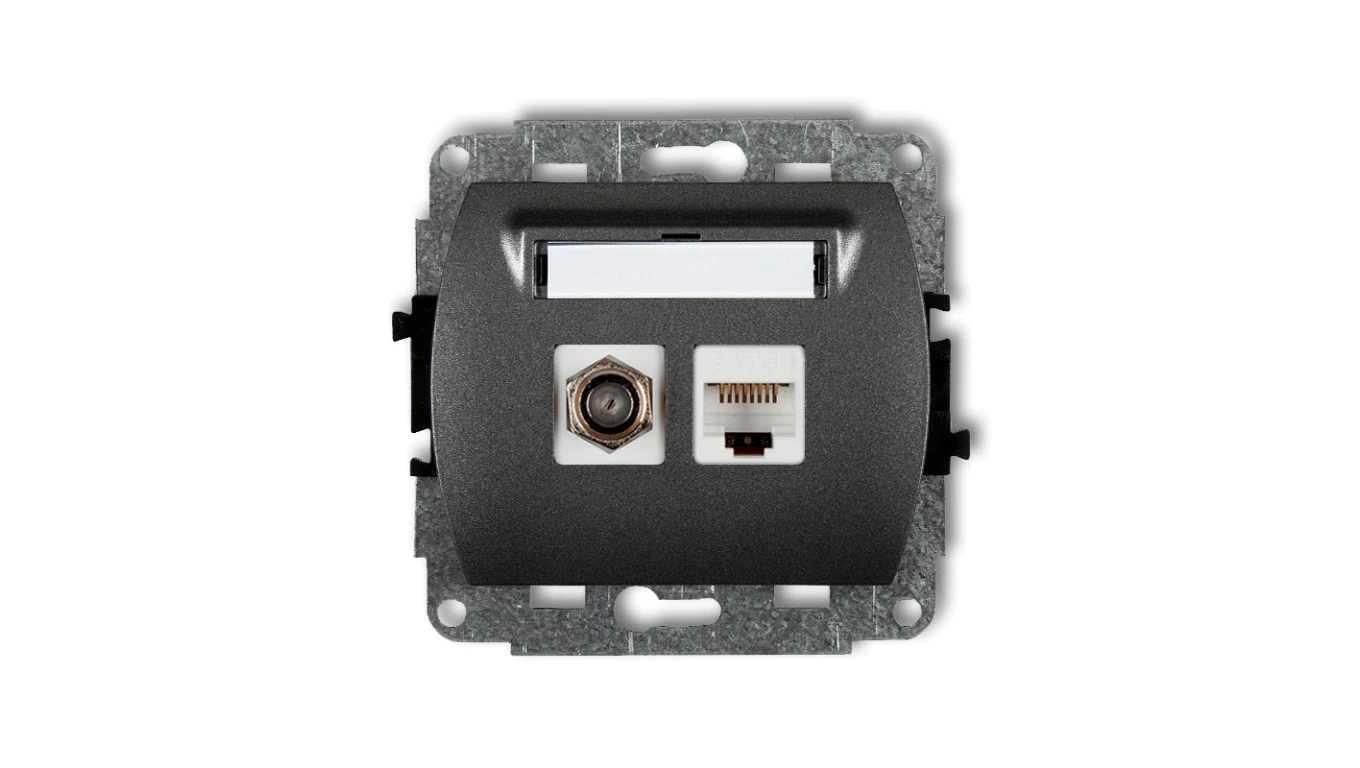 TREND Gniazdo antenowe pojedyncze typu F (SAT) + gniazda komputerowe pojedyncze 1xRJ45 kat. 5e 8-stykowy grafitowy 11GFK-1