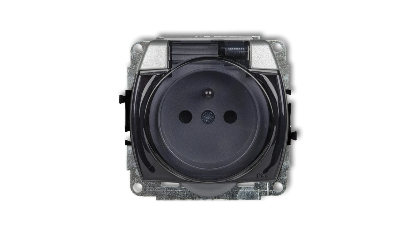 TREND Gniazdo bryzgoszczelne z/u (klapka dymna) srebrny metalik 7GPB-1zdp
