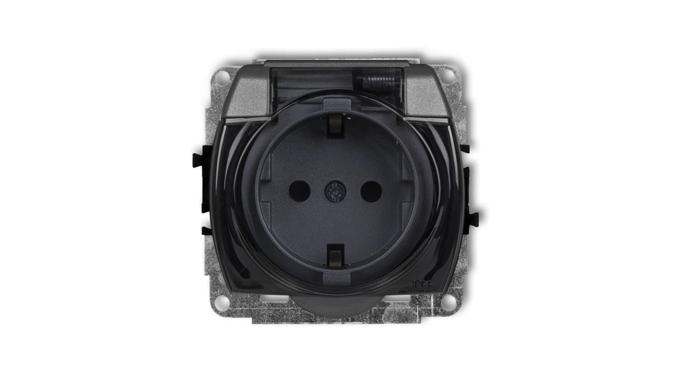 TREND Gniazdo bryzgoszczelne z/u SCHUKO (klapka dymna) grafitowy 11GPB-1sdp