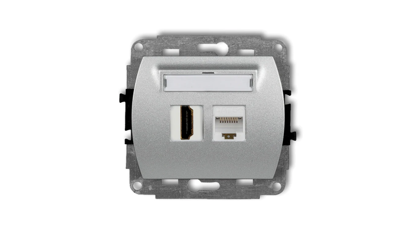 TREND Gniazdo pojedyncze HDMI + Gniazdo komputerowe pojedyncze 1xRJ45, kat. 5e, 8-stykowy srebrny metalik 7GHK