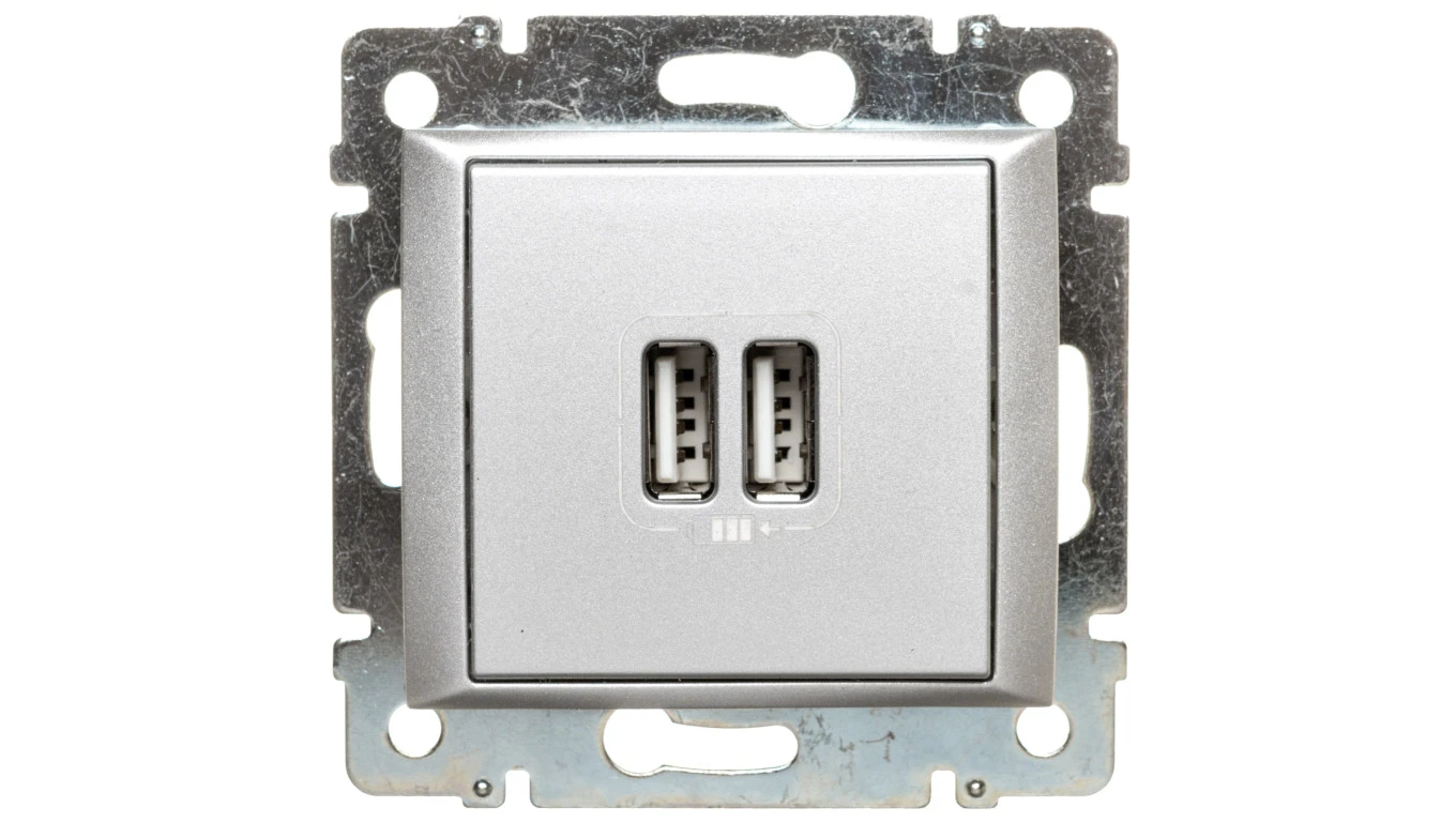 VALENA Gniazdo zasilające 2xUSB 5V 1500mA aluminium 770270