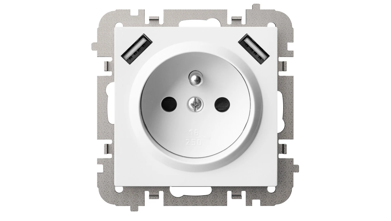Vestra Gniazdo 2P+Z 2xUSB zasilające bez ramki podtynkowe IP20 biały 3888-10