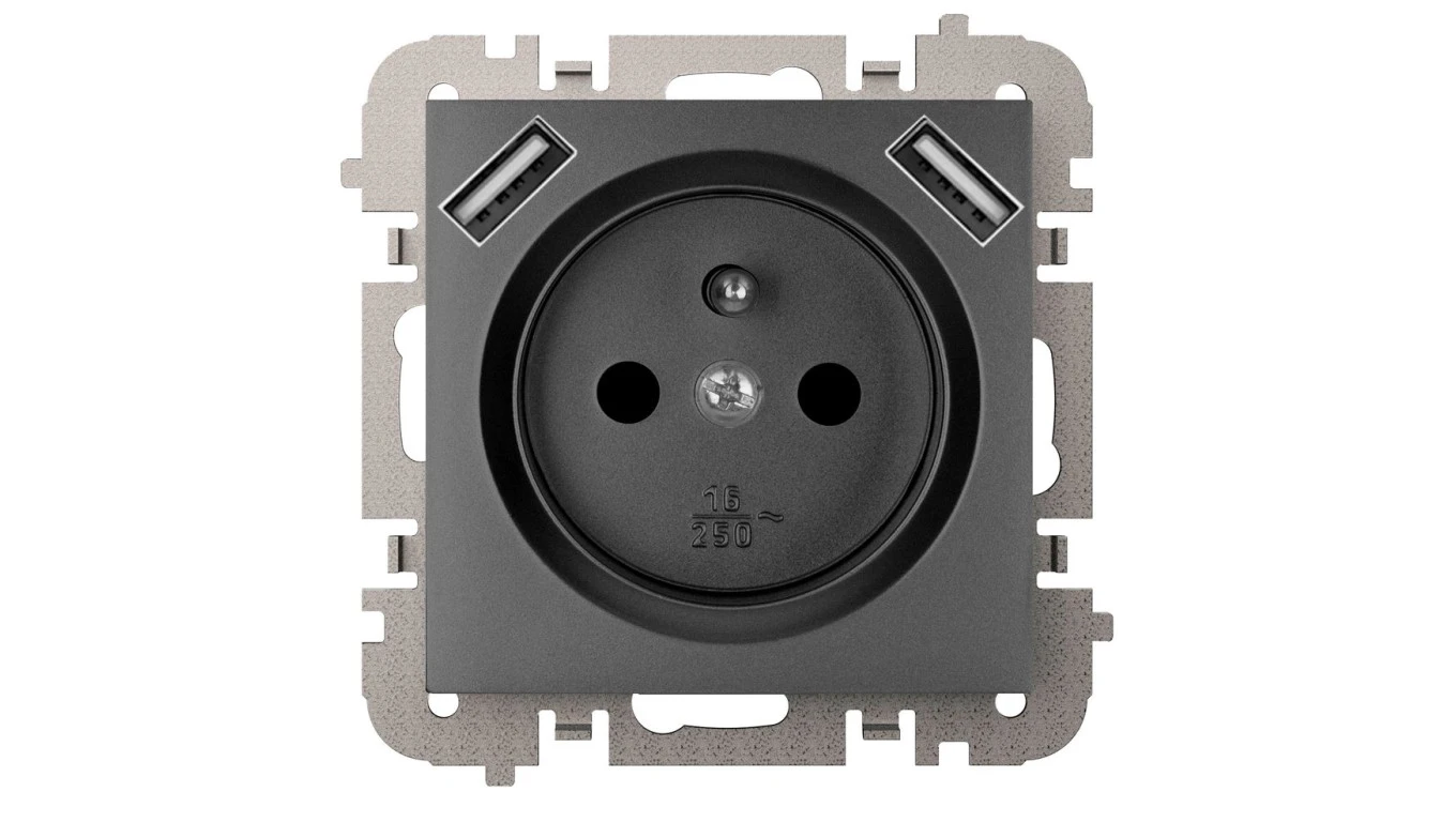Vestra Gniazdo 2P+Z 2xUSB zasilające bez ramki podtynkowe IP20 czarny 3888-19