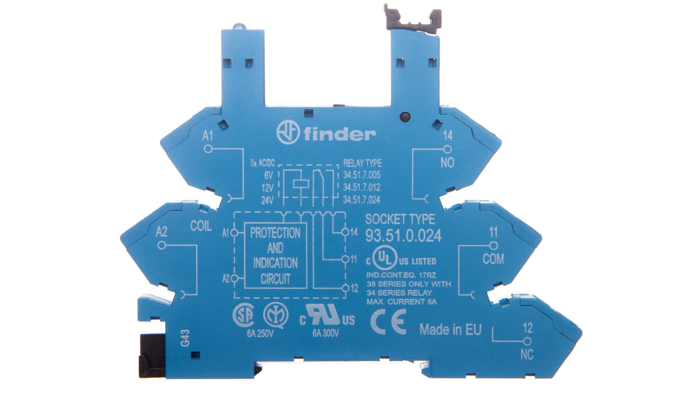 Wąskoprofilowe gniazdo 6,2mm do przekaźników serii 34, 6-24V AC/DC 93.51.0.024